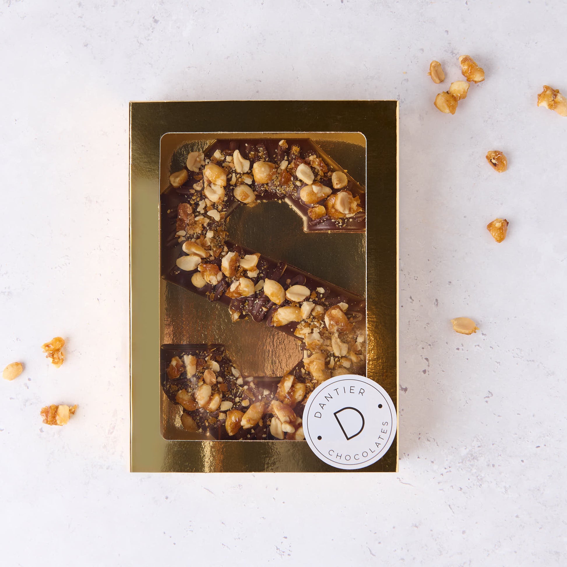 De pure letter is gemaakt met krokante, gekarameliseerde pinda’s en een snufje Zeeuws zout.